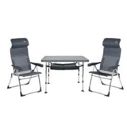 Le Kit Plein Air Ergonomic Classic est conçu pour les voyageurs et campeurs qui cherchent à maximiser l’espace de leur véhicule sans compromettre le confort. Avec une épaisseur de seulement 20 cm lorsqu'il est rangé, ce kit permet un rangement facile et pratique dans les espaces réduits, typiques des vans et camping-cars. Les fauteuils sont équipés d’appui-tête réglables et de dossiers inclinables pour un confort personnalisé, tandis que la table se déploie pour offrir une surface pratique sans prendre trop de place.